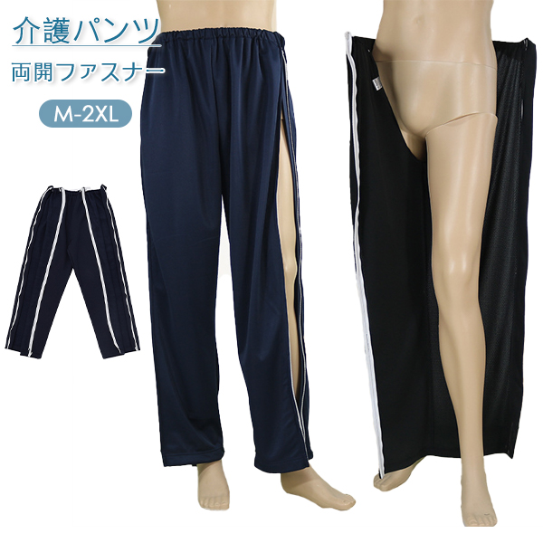 ファスナーパンツ 介護ズボン 春夏 春秋 フルオープン 男女兼用 高齢者 服 介護用 母の日 リハビリズボン 両開き 通院 診察 着脱不要 ウエストゴム スウェットパンツ 上下ファスナー シニアファッ