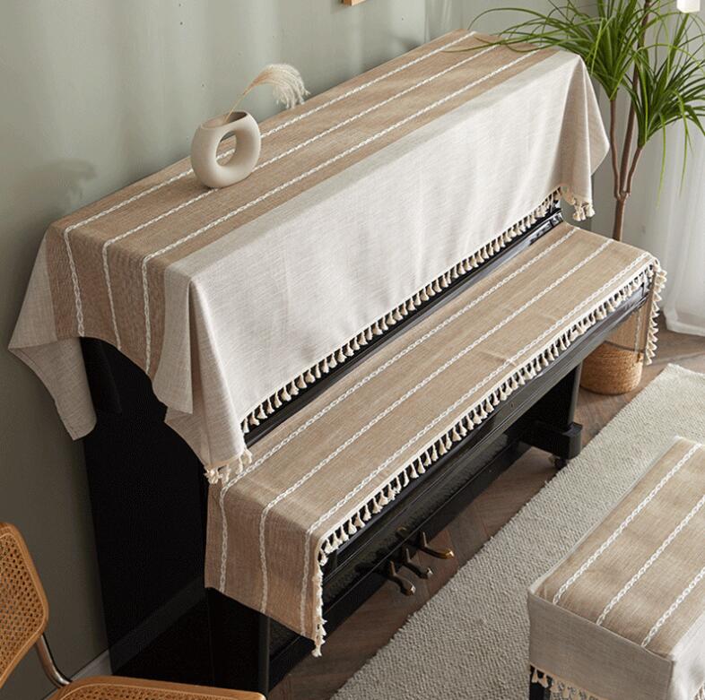 ピアノカバー 3点セット ピアノカバー キーボードカバー 椅子カバー リネン アップライト トップカバー 北欧 標準直立型ピアノ用