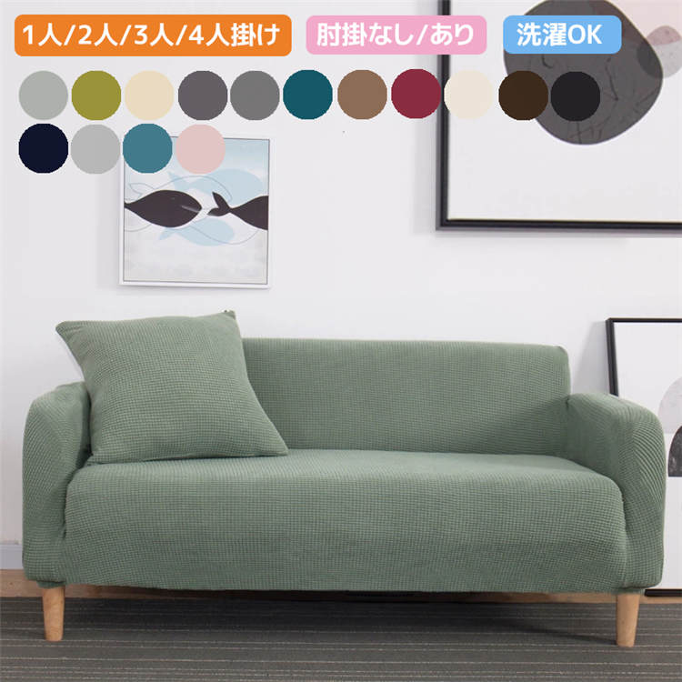 ソファカバー おしゃれ ソファー 伸縮 北欧 2人掛け 肘付き 3人掛け 4人掛け ダイニング 肘あり 家具 伸びる 無地 伸縮性 洗濯可 全15色 カバー 肘なし 002
