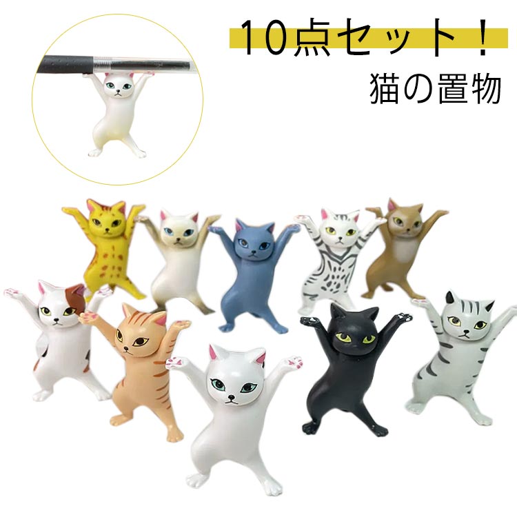 ペンホルダー 置物 モデル ネコ プレゼント 踊る猫 猫のペン立て ぺんおき 猫の置物 小さい ペンホルダー ネコ グッズ 雑貨 ペンたて 10点セット 猫 ヘッドフォンホルダー おしゃれ