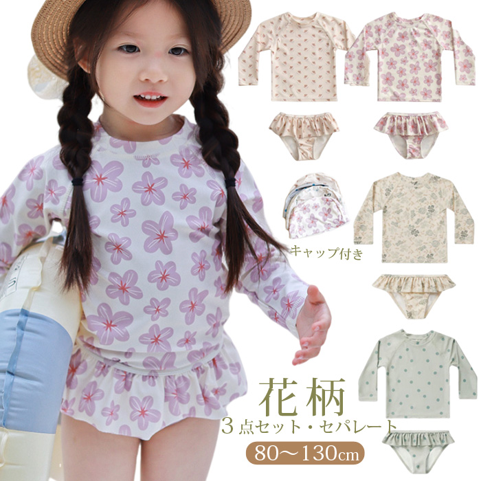 キッズ 水着 女の子 セパレート水着 フリル 花柄 子供 水着 学校 保育園 幼稚園 かわいい フリル水着 キッズ ベビー 服 UPF50+ 紫外線対策女児 プール 海水浴 スイミング