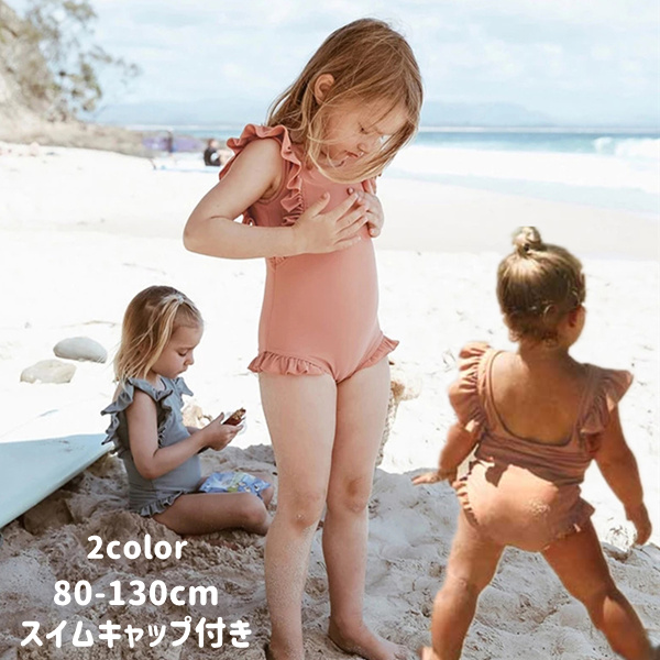 水着 子供 女の子 キッズ ピンク くすんだグリーン ワンピースキッズ ベビー マタニティ キッズファッション 水着