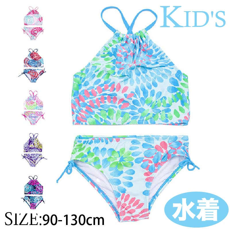 キッズ 水着 女の子 ビキニ セパレート エスニック 花柄 サイドリボンドローストリング 子供 ガールズ ジュニア 水遊び 水泳 スイミング ビーチ 旅行 プール 海水浴 スイムウエアー おしゃれ 可
