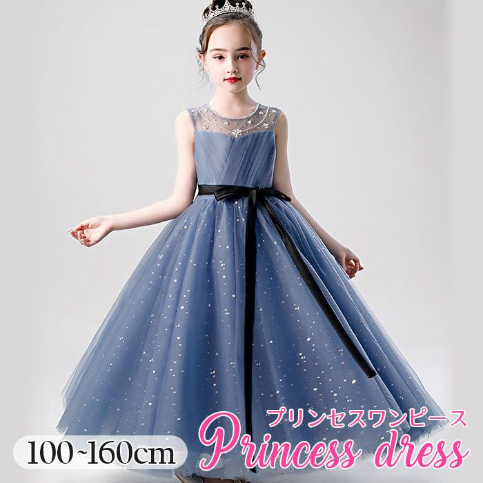 プリンセスドレス 子供 結婚式 ドレス 発表会 ドレス 中学生 高校生二次会 感恩会 パーティー 舞台 130 140 150 160 全身全体スパンコール 高級感