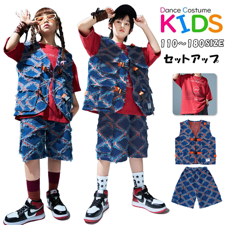 HIPHOPの最先端を走るダンス服 キッズダンス ダンスウェア 夏用 演出 舞台 hiphop K-POP おしゃれ 舞台服 発表会 練習着 応援団 人気 新作 110-180cm