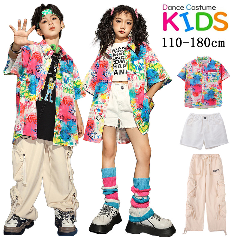 女の子 男の子 キッズダンス 衣装 半袖 シャツ パンツ ヒップホップ ガールズ ボーイズ ジャズ セットアップ 応援団 練習着 個性派 人気 新作 100 110 120 130 140