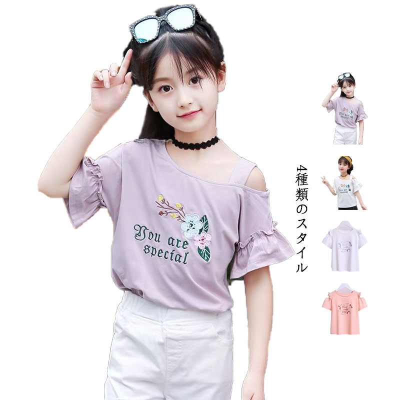 ブラウス 肩出し カジュアル 女の子 カットソー 子供服 ベビー服 Tシャツ 可愛い おしゃれキッズ ベビー マタニティ キッズファッション トップス シャツ ブラウス