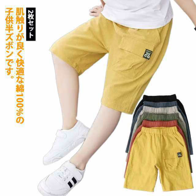 2枚セット ハーフパンツ キッズ 半パンツ 子供服 半ズボン 無地パンツ ウエストゴムキッズ ベビー マタニティ キッズファッション パンツ