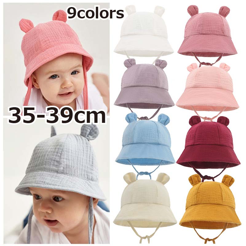 赤ちゃん ベビー 新生児 帽子 夏 ハット 耳付き 無地 かわいい おしゃれ 35~39 対策 おでかけ 綿 男の子 女の子 ギフト レジャー 公園 日除け 日よけ帽子 サンハット 帽