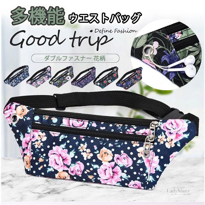 多機能 ウエストバッグ 女性 屋外 花柄 和柄 花 葉 チェストバッグ レジ袋 財布 レディース アウトドア クロスボディバッグ ウエストポーチ ボディバッグ ショルダーバッグ 肩掛けバッグ レジャー