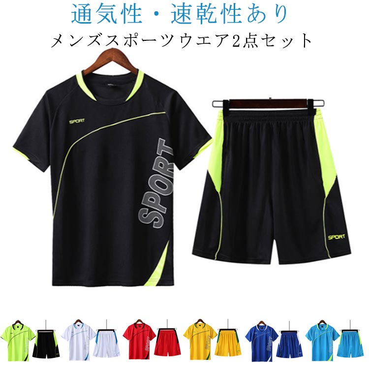 上下セット メンズスポーツウェア ハーフパンツ 半袖 スポーツウェア 通気 ストレッチ 軽量 薄手 ジャージ 短パン 吸汗速乾 ひんやり 夏用 トレーニングウェア ヨガウェア ジム 運動着 ゴルフ シ