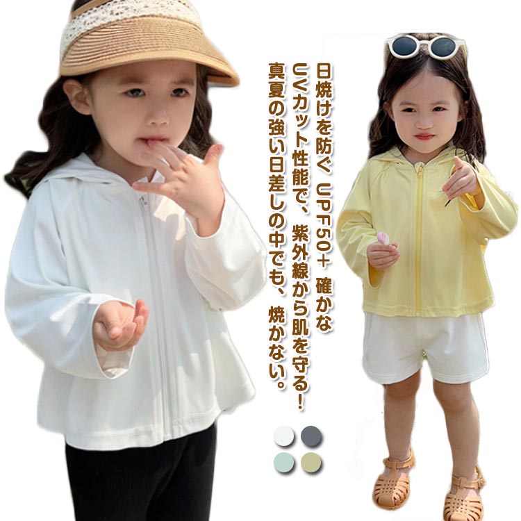 冷感素材 UVカットパーカー ジップアップパーカー ライトアウター 軽い 軽量 アウター コート フード 前開き ファスナー ジュニア 小学生