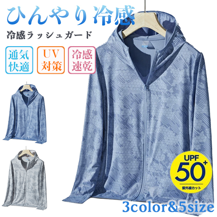 ラッシュガード メンズ レディース 男女兼用 長袖 パーカー UVカット 紫外線対策 日焼け防止ウェア ラッシュパーカー 接触冷感 UPF50+ アウター 夏