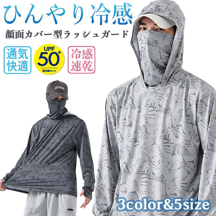 マスク、フードが一体になっていて、日焼け対策にバッチリ 革新的なデザイン 顔面カバー型 UVカットパーカー 父の日 プレゼント 実用的 山登り 釣り 大きいサイズ