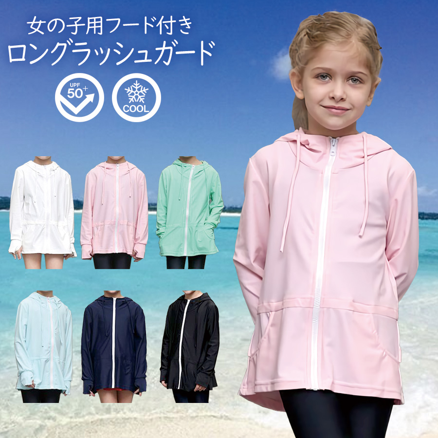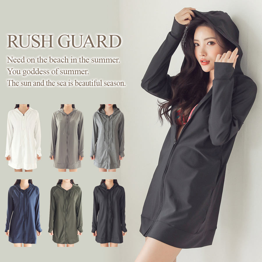 ラッシュガード 体型カバー UVカット ロング丈 水着 パーカー 長袖 紫外線対策 日焼け防止 レディース 女性用 大人 女の子 ママ 妊婦 ジップアップ ラッシュパーカー 指穴付き 大きいサイズ お