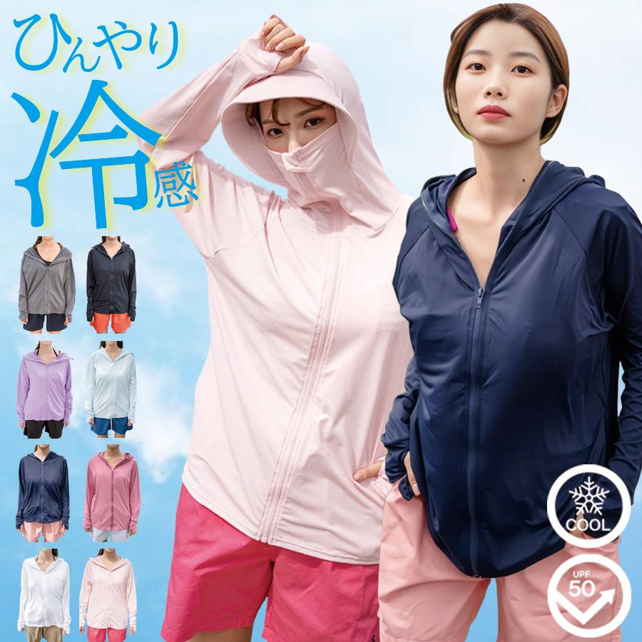 レビューを書くと保証期間延長 体型カバーと紫外線対策さらに冷感素材 ラッシュガード UVカット フード パーカー