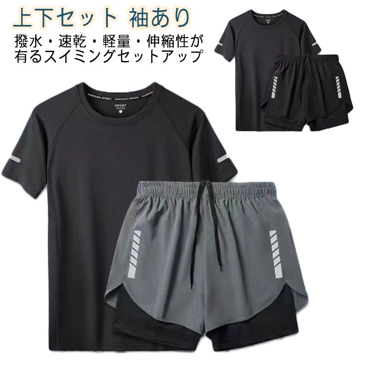 水着 大きいサイズ メンズ セット かっこいい ラッシュガード 袖あり セット 半袖 フィットネススポーツ アウトドア 水泳 競技水着 メンズ競技水着