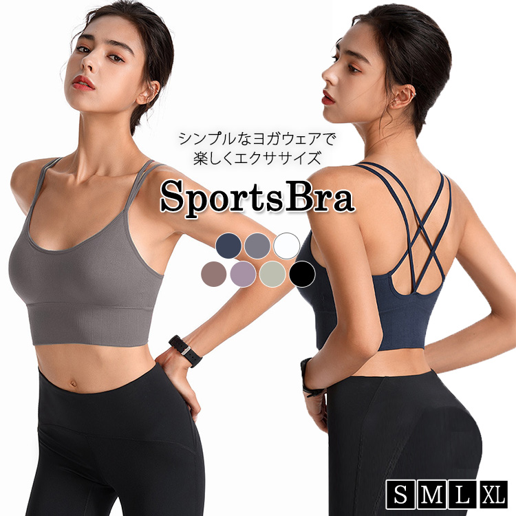 クロスストラッピーがヘルシーな魅せ方に、体の負担も小さめ ヨガトップス ヨガウエア 女性 スポブラ バックデザイン トレーニング ランニング 練習 シンプル 春 夏 秋 冬