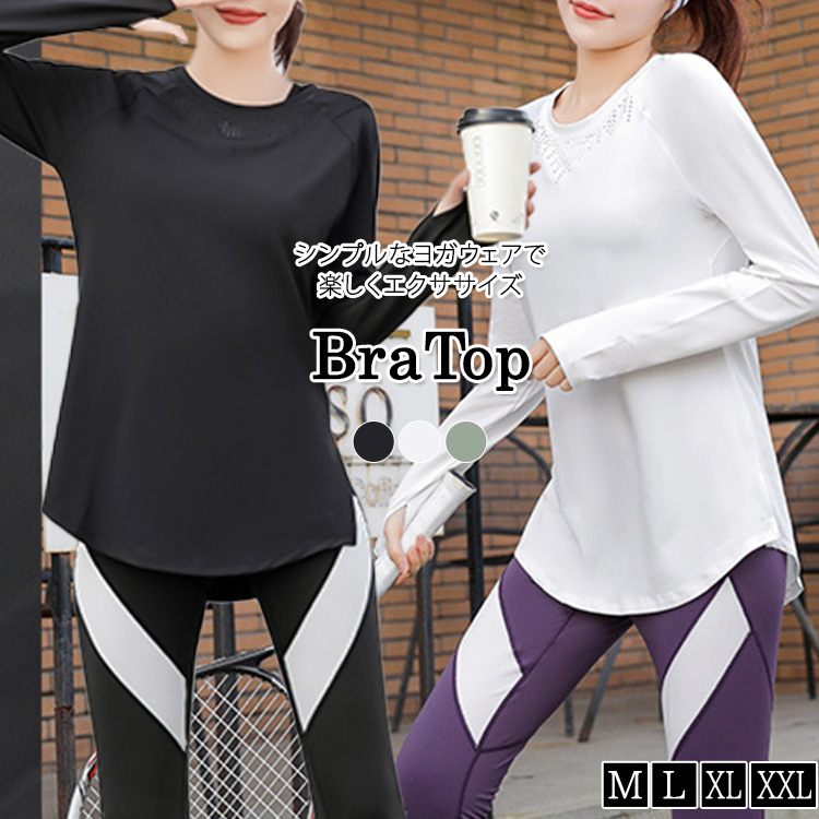 パンチングでアクセ風に見せるテク スリットが動きやすさも ヨガトップス ヨガウエア カットソー チュニック 女性 ロングスリーブ 指穴 ラウンドヘム ヨガシャツ