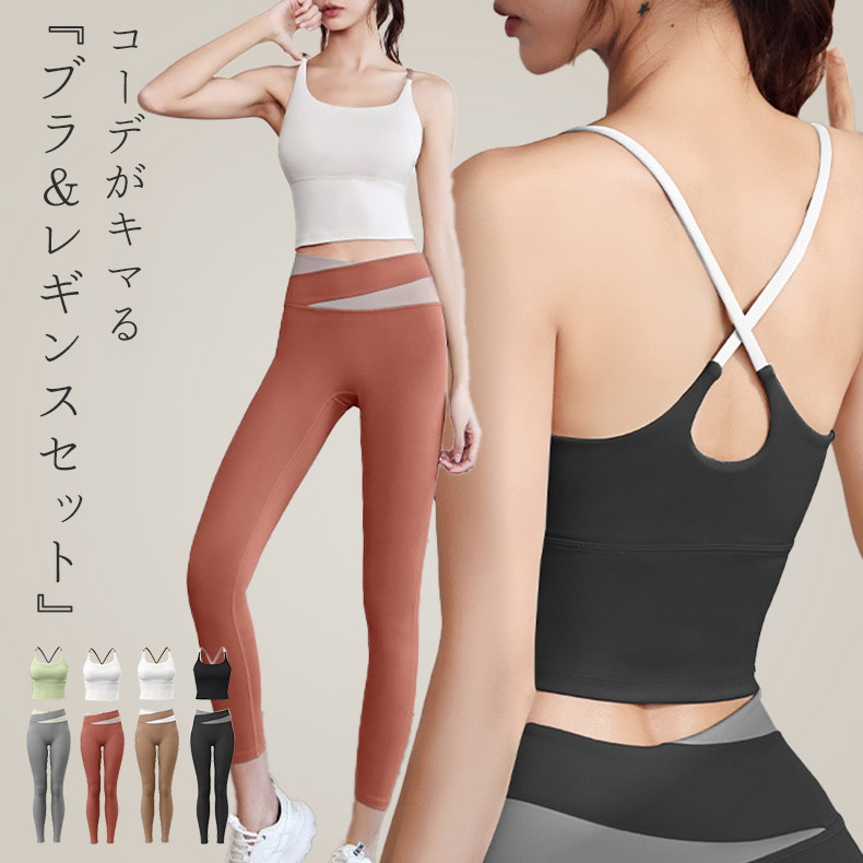 バッククロスで背中美人♪すぐに始まられる上下セットアップ ヨガ 上下 セット フィットネスウェア トレーニングウェア 女性 ホットヨガ ピラティス ダンス トレーニング