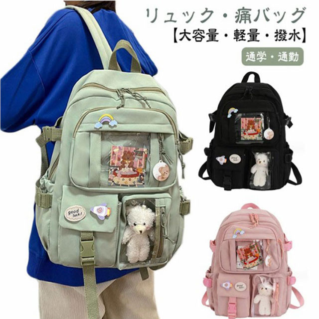 撥水 可愛い 大容量リュック トラベル オシャレ ギフト お出かけ クリアバッグ デコ ぬいぐるみ オタク ジュニア 女子
