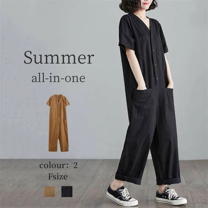 人気新作 春夏に 頼れる1枚 オールインワンパンツ -- ベージュ ブラック 黒 フリーサイズ 10代 20代 30代 40代 50代 普段使い デート 通学 通勤 夏休み ママ