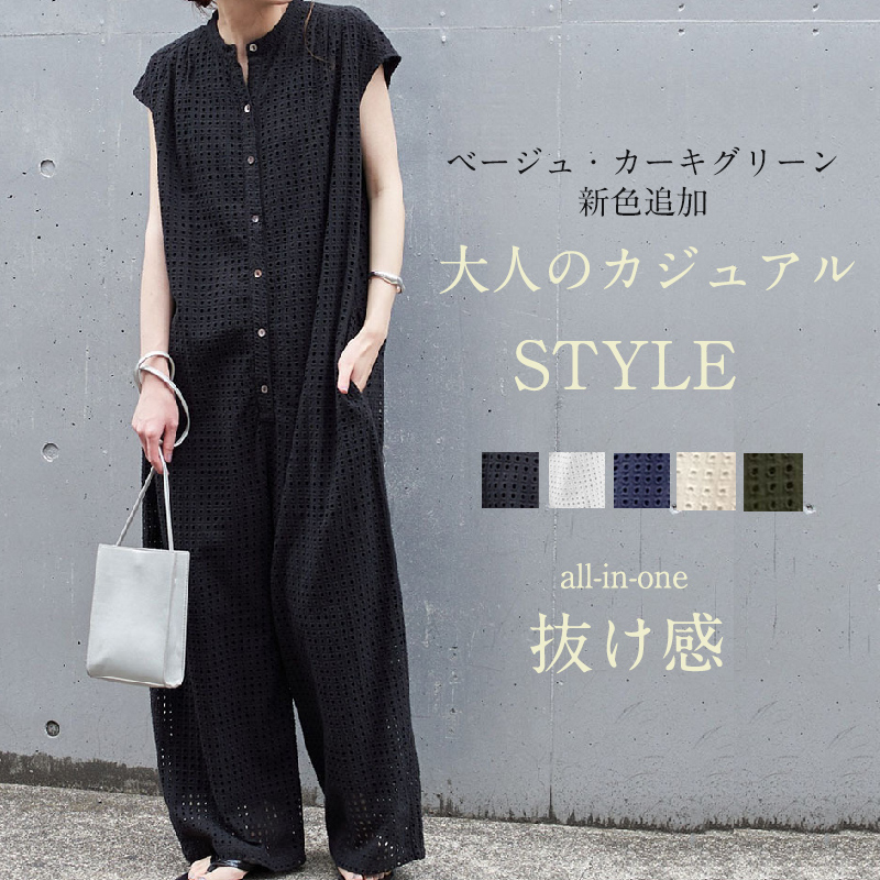 大人の オールインワン つなぎ 半袖 透け感 夏用 抜け感のあるゆったりオールインワン ワイドパンツ 裏地づき フリーサイズ ホワイト ブラック