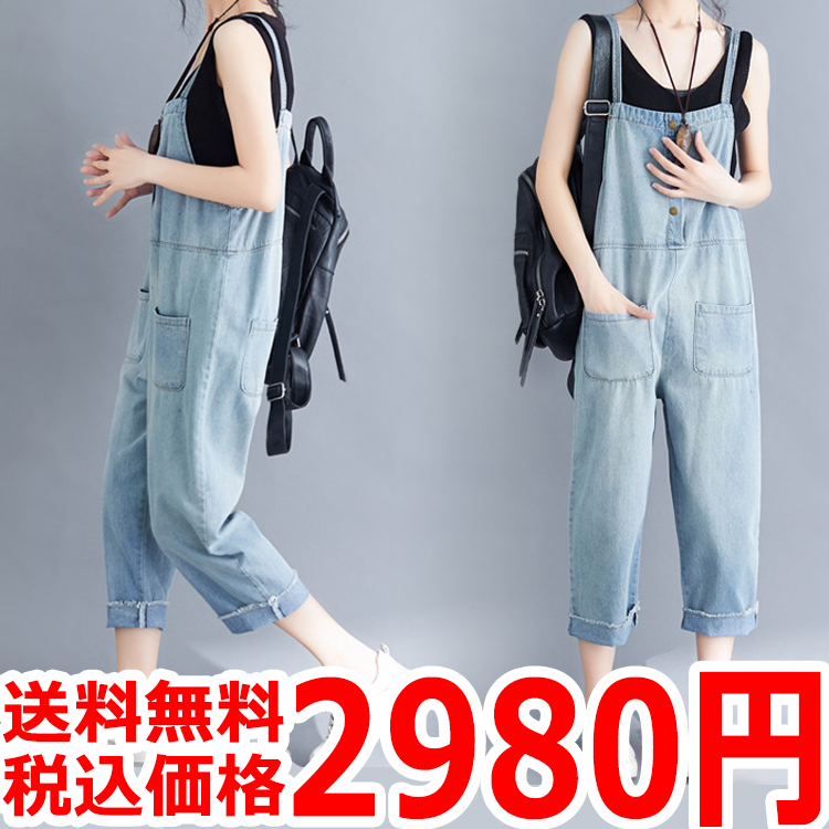 サロペット オーバーオール レディース オーバーサイズ つなぎ クロップド丈 膝下 ミディ丈 ゆったり 大きめ ゆるだぼ 体型カバー 重ね着 春 夏 秋 大人可愛い シンプル カジュアル