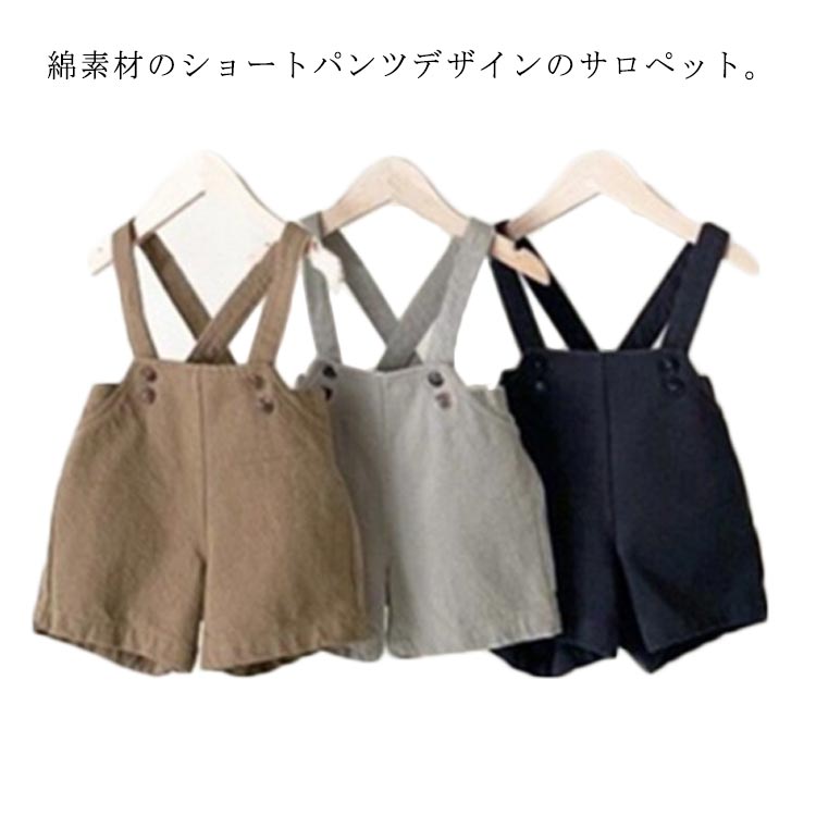 おしゃれ お出かけ 男の子 サロペット ショート丈 ショートパンツ オーバーオール 女の子 キッズ ハーフパンツ 短パン 可愛い 吊りパンツ 吊りベルト 保育園 幼稚園 ベビー 無地 ベビー