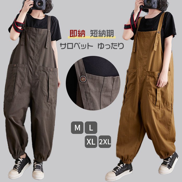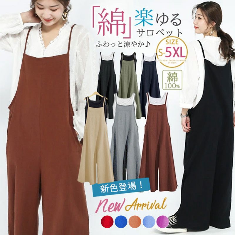販促 サロペット オーバーオール レディース 夏 春 ゆったり きれいめ 大きいサイズ ロングパンツ ワイドパンツ