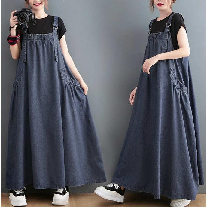 デニムワンピース サロペット ワンピース オールインワン レディース デニムスカート ジャンパースカート マキシ丈 春 夏 秋 カジュアル 可愛い タンクトップ 体型カバー ゆったり 着痩せ 重ね着