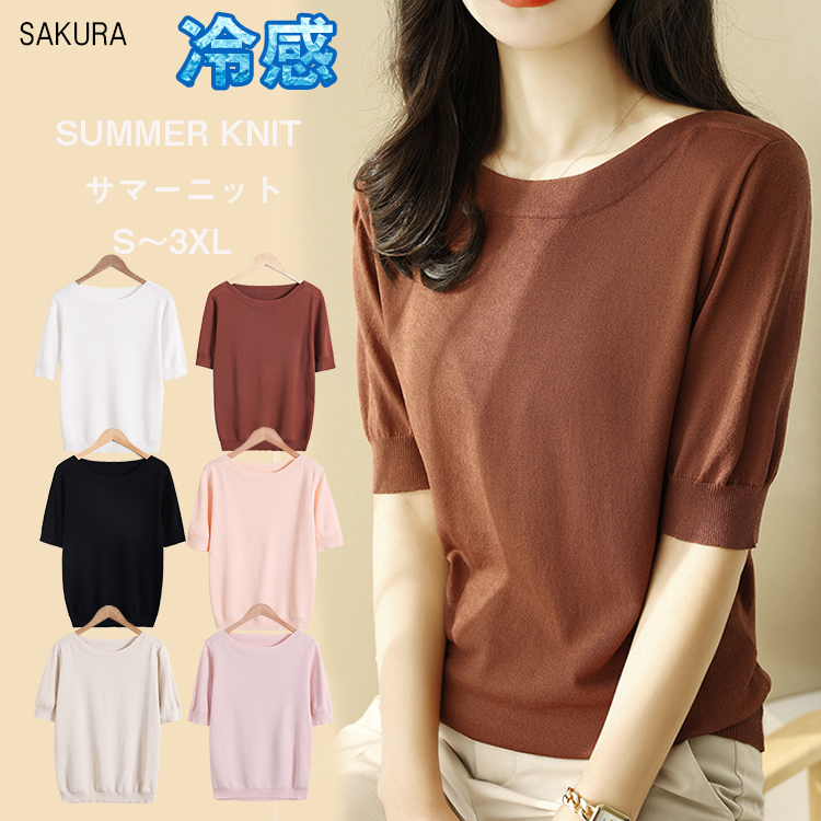 サマーニット レディース トップス 半袖 カットソー ボートネック 涼感ニット ニットソーレディースファッション トップス ニット セーター セーター