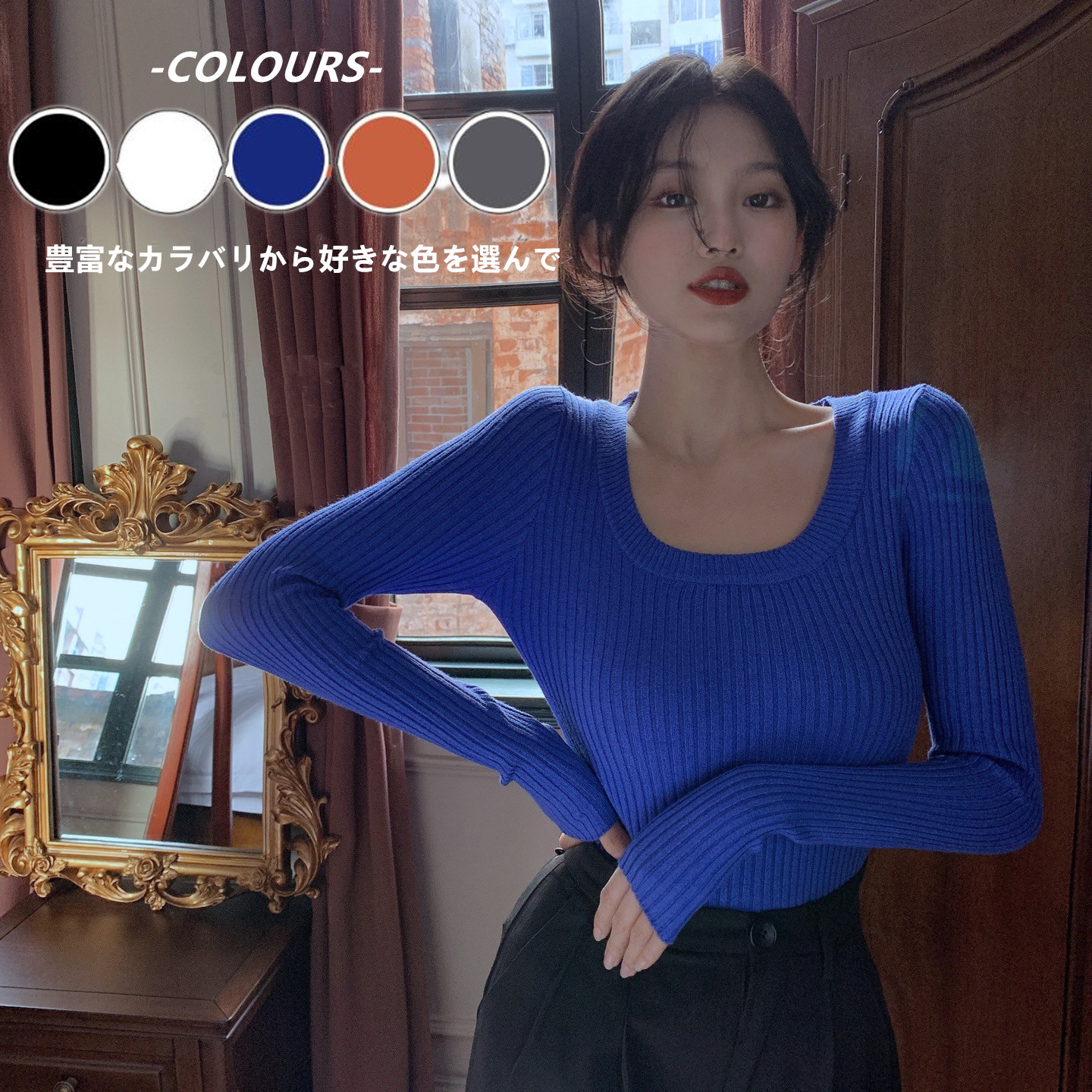 クルーネック ニットカットソー ベーシック 薄手ニット 着回し ニットプルオーバー 柔らかい ニットインナー 無地全9色 重ね着ニットソー黒 ニットセーター薄手 ニットウエア春秋冬