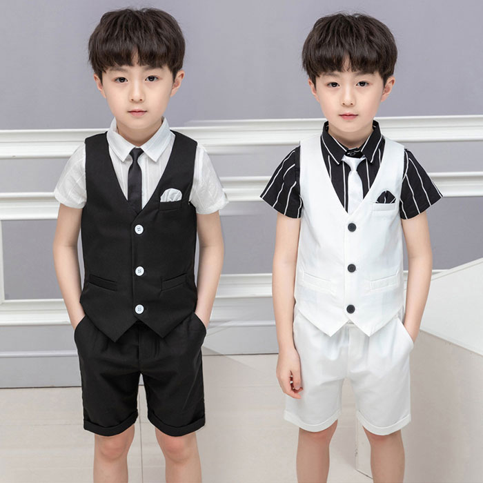 男の子 フォーマルスーツ 4点セット子供 スーツ 男児 ベストスーツ 半袖 半ズボン 夏用 子供服 結婚式 ピアノ 発表会 誕生日 90 100 110 120 130 140 150 160cm オ